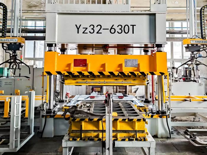 מצב פעולה של צלחת דקה כפולה של 630 טון, נמתחת לחץ הידראולי: